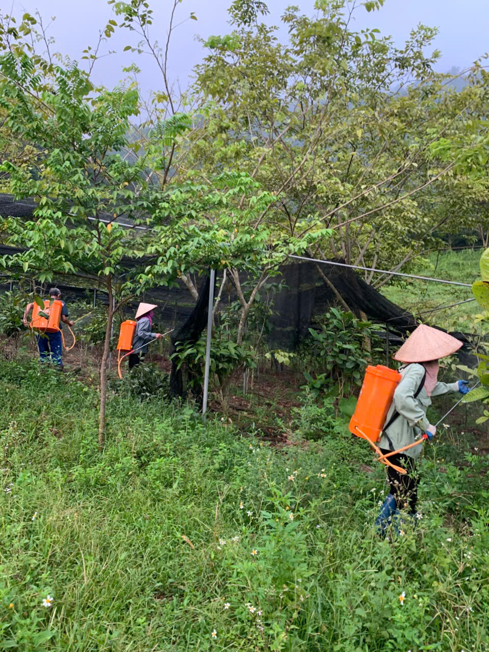 09-12-2024 12:12:00 | Bảo vệ thực vật | Tiến hành phun chế phẩm sinh học Anisaf 01, 02 và 03 để phòng trừ các loại sâu hại, các bệnh về nấm và virus gây ra cho cây. Cách dùng: pha tỉ lệ 200ml mỗi loại chế phẩm /20 lít nước phun cho toàn bộ vườn | Hoàn thành | |