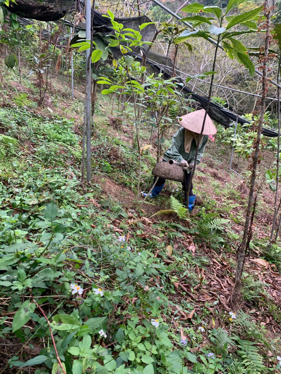 | 16-06-2025 12:06:00 | Làm cỏ | Tiến hành làm giảm bớt cỏ cho cây Trà Hoa Vàng bằng phương pháp thủ công (bằng tay). Tổng kết bón phân chuồng hoai mục, tổng lượng bón 1.1 tấn. | Hoàn thành | |