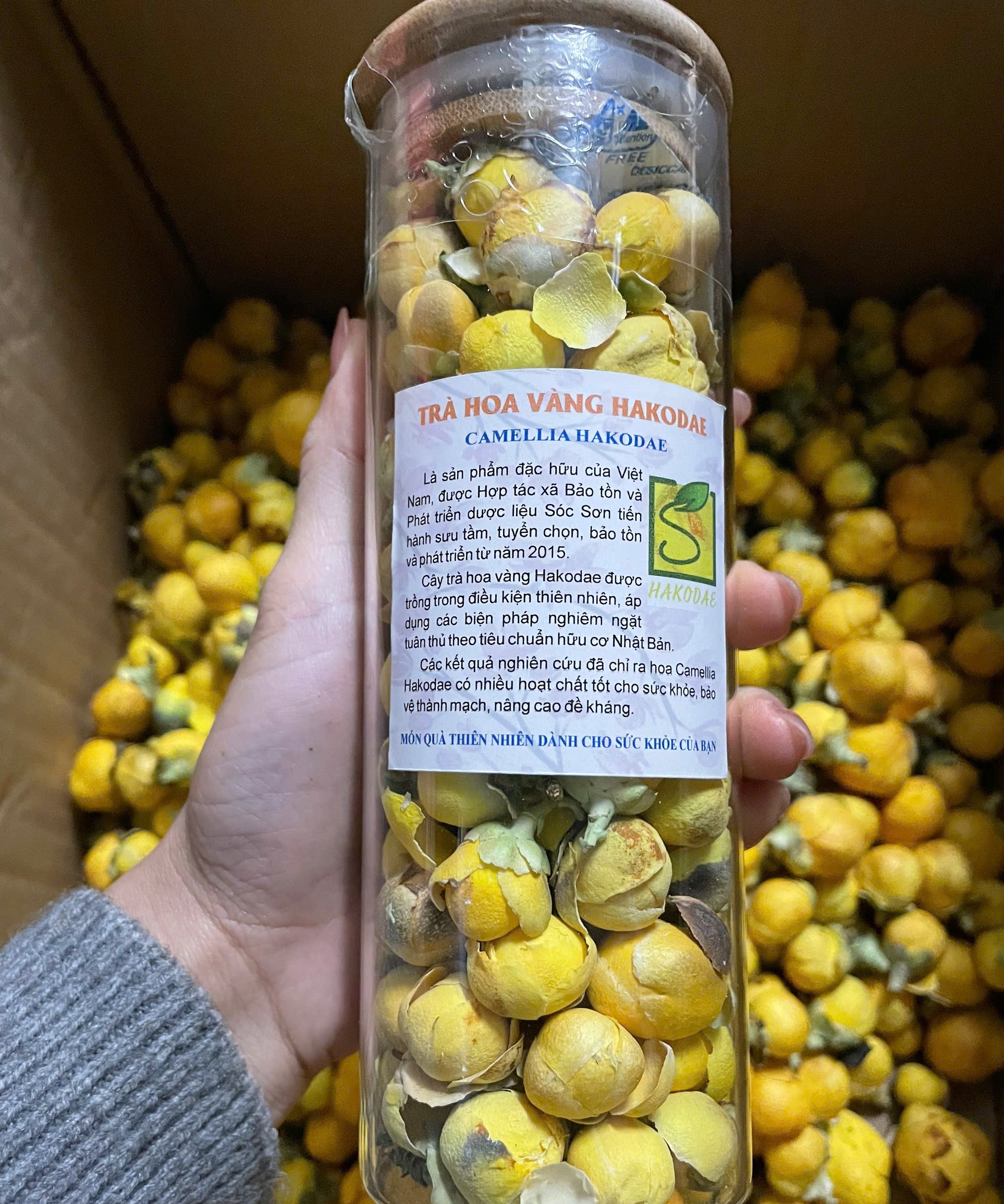 | 05-01-2026 12:01:00 | Thu hoạch | Tiến hành thu hoạch hoa Trà Hoa Vàng đợt 1. Sử dụng phương pháp thu hoạch thủ công bằng tay. Thời tiết 5/1/2026 trời nhiều mây, trời rét, nhiệt độ 15 - 19 độ, độ ẩm không khí ở mức trung bình. Sau khi thu hoạch, hoa được đựng trong thùng carton và vận chuyển bằng xe chuyên dụng tới địa điểm sấy. Tổng khối lượng hoa tươi thu được là 7.5Kg | Hoàn thành | |