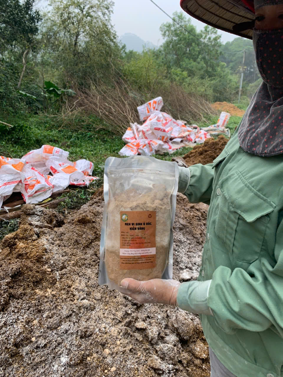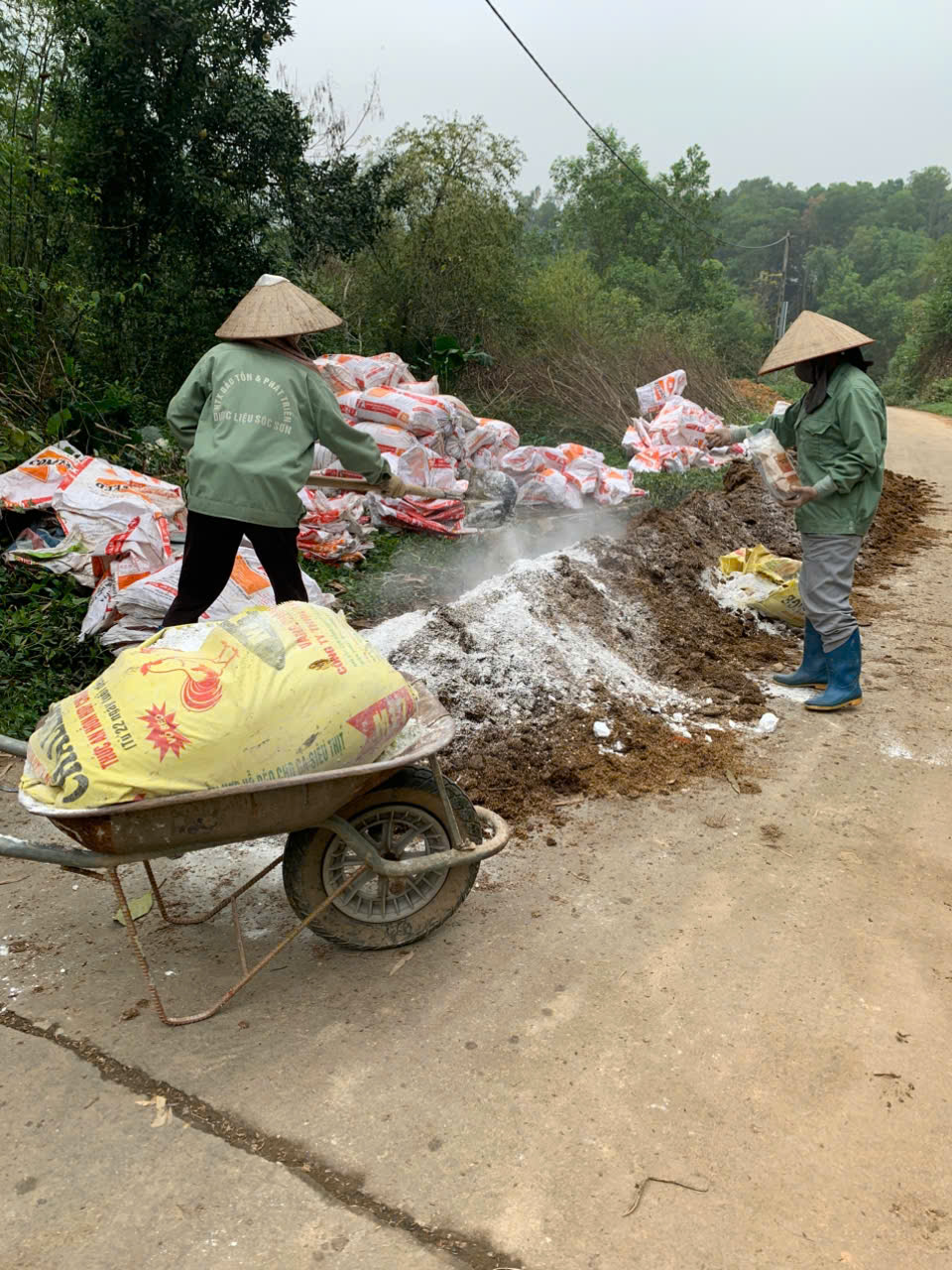| 18-02-2025 12:02:00 | Thao tác kỹ thuật | Tiến hành ủ phân sử dụng tại khu 1. Nguyên liệu gồm 2.1 tấn phân gà được thu gom từ các hộ chăn nuôi xung quanh, 45kg vôi, 5kg chế phẩm men vi sinh ủ "Kiến vàng". Thực hiện trộn đều phân và vôi với nhau, sau đó cứ rải một lớp phân rồi lại rải một lớp chế phẩm vi sinh Kiến vàng. Tưới nước cho đống ủ sao cho độ ẩm đạt 50%. Dùng bạt, bao rứa để đậy kín để giữ nhiệt và độ ẩm. Sau khoảng 15 - 20 ngày tiến hành kiểm tra, đảo trộn nếu cần và nếu nguyên liệu khô thì bổ sung nước. Dự kiến thời gian ủ từ 45 – 60 ngày. | Hoàn thành | |