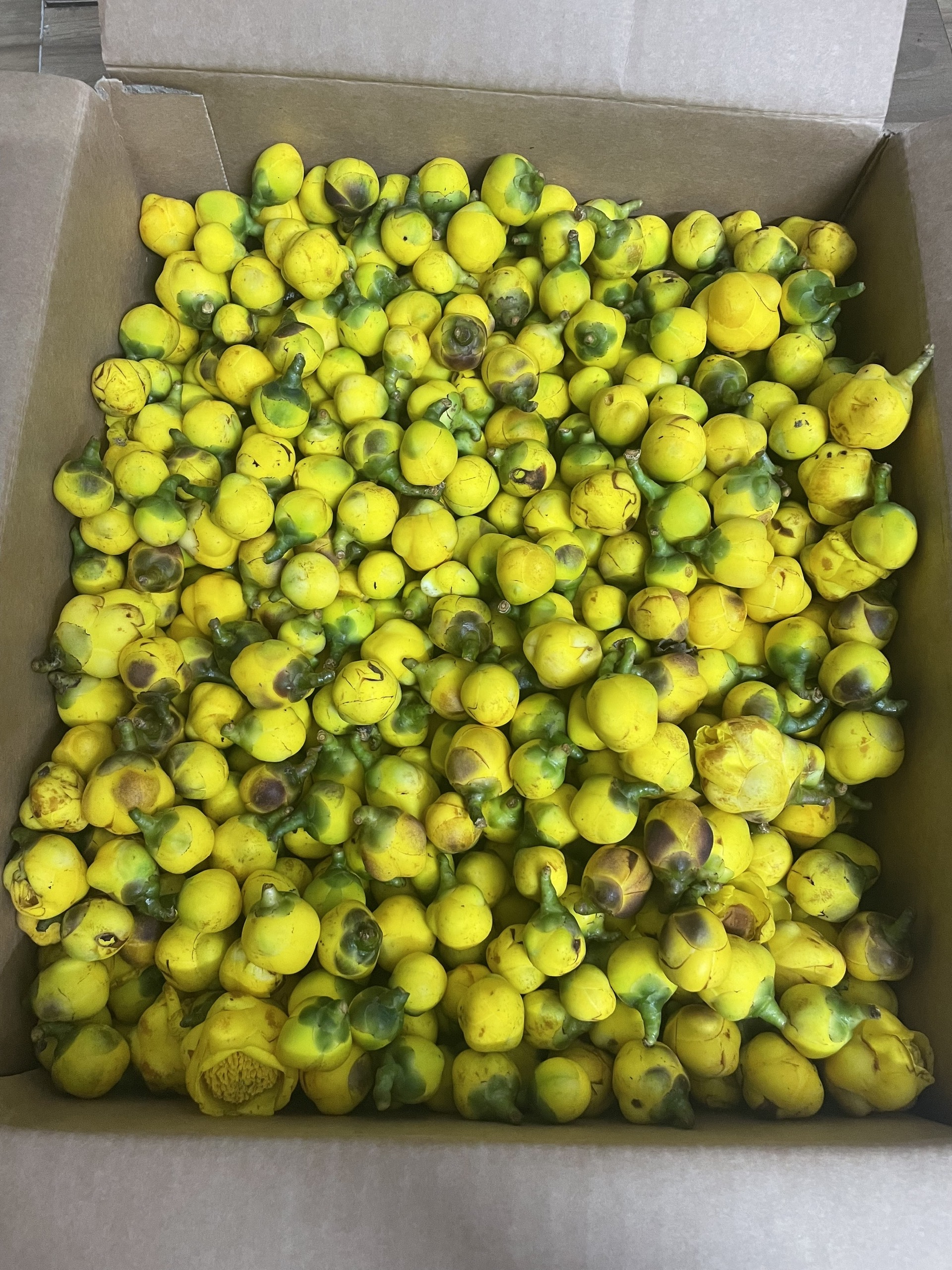 | 11-01-2025 12:01:00 | Thu hoạch | Tiến hành thu hoạch hoa Trà Hoa Vàng. Thu hoạch hoa để chế biến và sử dụng Trà Hoa Vàng chủ yếu là thu hái ở giai đoạn nụ, cần phải chú ý hái đúng thời điểm nụ trà phát triển đạt kích thước lớn nhất, tức là hoa phải đạt độ "chín" nhưng phải đảm bảo hoa trà chưa bung nở, vẫn giữ nguyên được đài hoa nhằm đảm bảo được hàm lượng hoạt chất trong hoa là lớn nhất mang lại giá trị cao nhất. Sử dụng phương pháp thu hoạch thủ công bằng tay. Tổng khối lượng thu hoạch ngày 11/01/2025 là 6kg hoa tươi. Sau khi thu về được đựng trong thùng carton để hoa không bị bí hơi, mất màu và được sấy thăng hoa để bảo quản. Tại thời điểm trước và sau khu thu hoạch thời tiết thuận lợi, có nắng nhẹ, khô ráo, độ ẩm thấp 41%, nhiệt độ 9 - 20 độ. | Hoàn thành | |